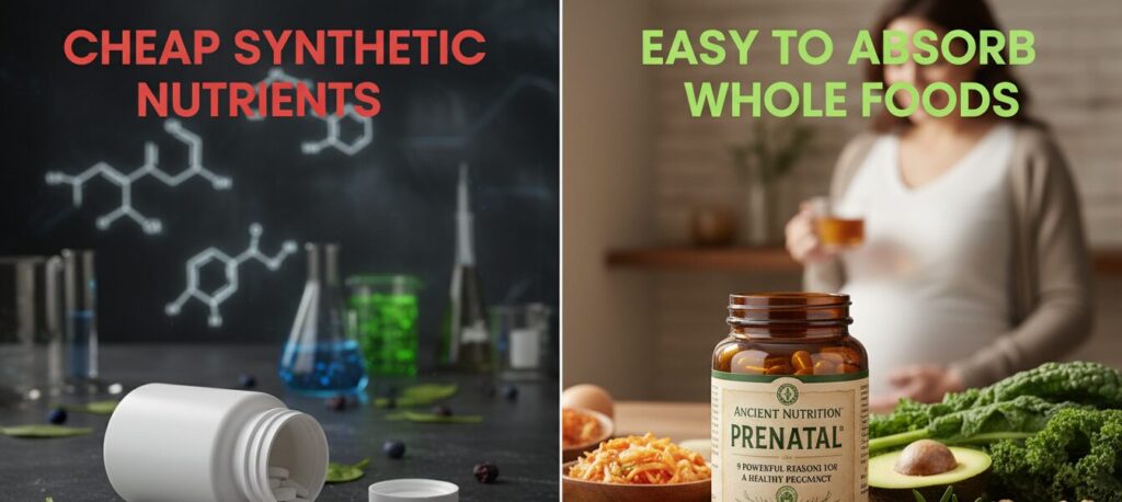 Most prenatal vitamins are made with cheap synthetic nutrients in forms that are hard for your body to absorb.